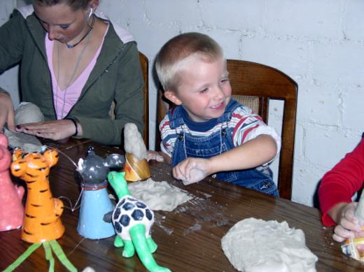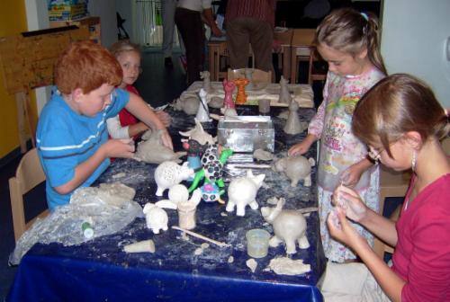 Die Idee vom Töpfern beim Kindergeburtstag war die eigentliche Grundlage für das mobile Töpferstudio. Für ca 2 Stunden sind die Kinder mit viel Spaß und großer Konzentration bei der Sache. Es reicht ein großer Tisch, und ruck zuck wird ihre Wohnung zum Atelier. Der verwendete Ton ist verarbeitungsfertig und wasserlöslich, so kommt es erst gar nicht zu großen Verunreinigungen. Das Lieblingskuscheltier nachtöpfern, oder von Starwarsfiguren bis zum Sparschwein - mit der von mir entwickelten einfachen Art des figürlichen Kindertöpferns mache ich alle Kinder zu kleinen Künstlern.